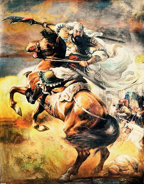 受《三國演義》影響,民眾普遍認為有「桃園三結義」一事,關帝居中,所以人們又稱其為「關二爺」。關帝一生赤膽忠心,從最早劉備一無所有,即盡忠護主,與張飛募兵擊潰張角黃巾軍,隨劉備輾轉各地。自徐州受曹操攻擊失守後,兄弟三人失散,關帝死守下邳,為保全劉備妻小平安,與曹約法三章:一降漢不降曹;二曹須照料兩嫂生活,且曹營人等不得到門;三是一知兄長劉備下落,便要離去。曹操愛惜關帝之才,百般禮遇,而關帝為報答曹恩情,陸續為其斬袁紹大將─顏良、文醜,也因此受漢獻帝封其為「漢壽亭侯」。